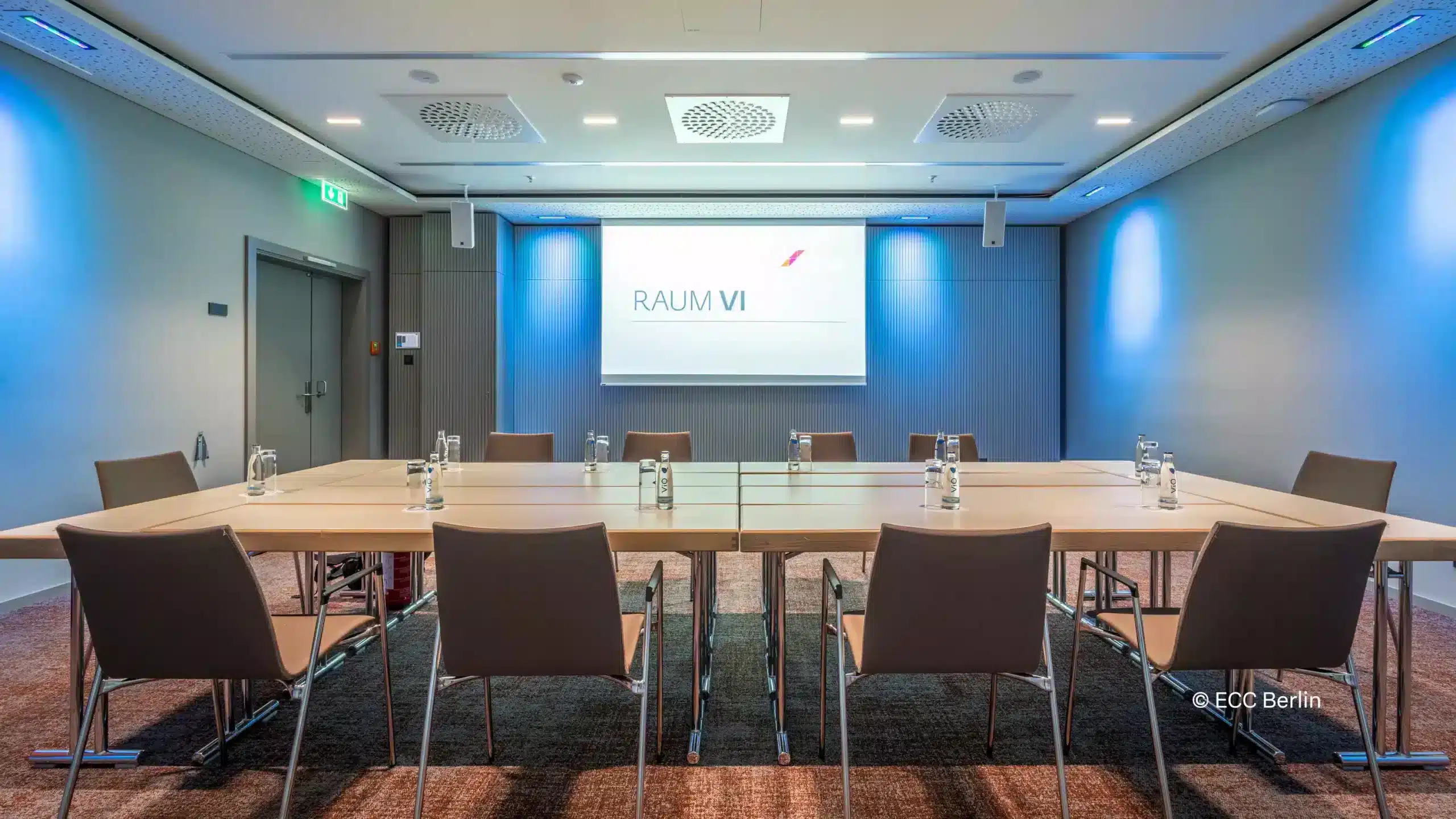 In den Tagungsräumen können über die im System eingebundenen Touchpanels Projektionen, Audioanlagen (via Dante),  Lichtstimmungen und die Verdunkelung der Fenster gesteuert werden. Dies gilt nicht nur für einzelne Räume, sondern auch für mehrere Sektionen im Zusammenschluss. Ebenso lassen sich im Foyer und in den Fluren, über die dortigen Touchpanels, Musikplaylisten oder Lichtstimmungen anwählen und einstellen. Unterschiedliche Lichtkonzepte und Installationen wurden zudem im Eingangstunnel, Treppenhaus, und bei der Ausleuchtung der Kunstobjekte realisiert. Über den Türen der Tagungsräume wurden jeweils NEC 43″ Displays und im untern Foyer ein NEC 86″ Display installiert. Hier können Informationen zu den jeweiligen Veranstaltung angezeigt werden.