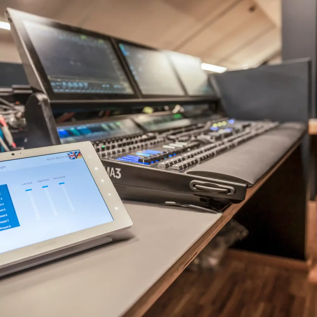 • 1 x Crestron Steuerung – mit Anbindung auf grandMA zur Steuerung der gesamten Decken-und Wandbeleuchtung