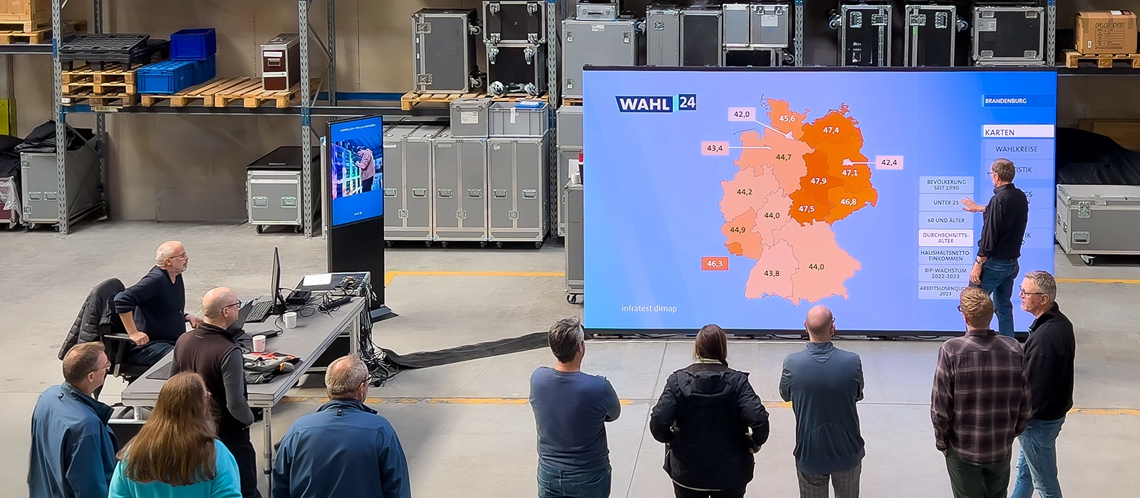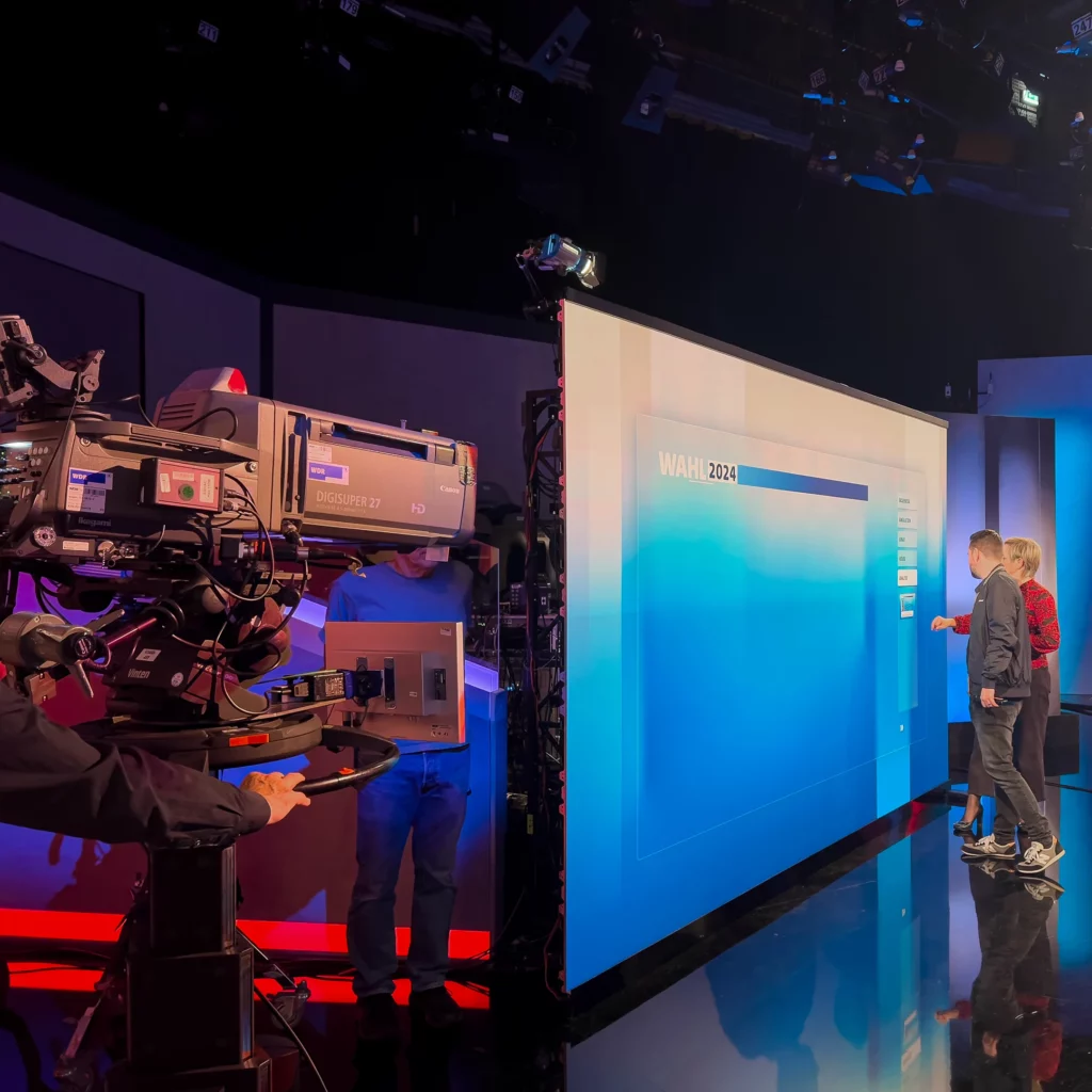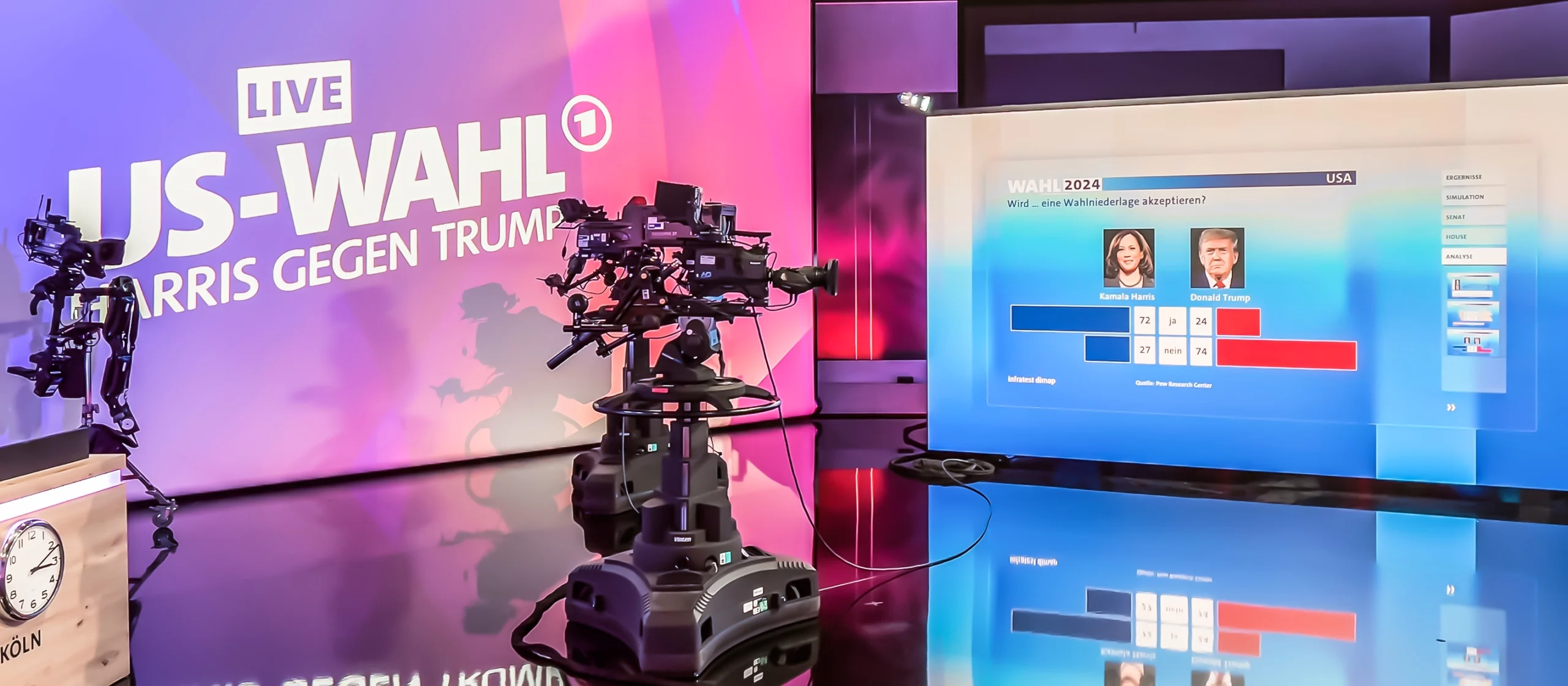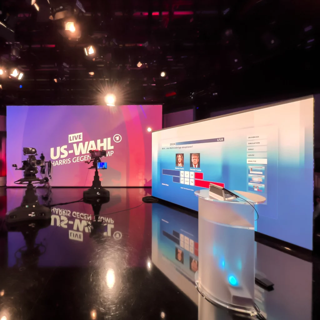 Zur US-Wahl, der Bundestagswahl und der Bürgerschaftswahl in Hamburg unterstützen wir die beteiligten Sendeanstalten der ARD bei der technischen Ausstattung ihrer Wahlstudios.