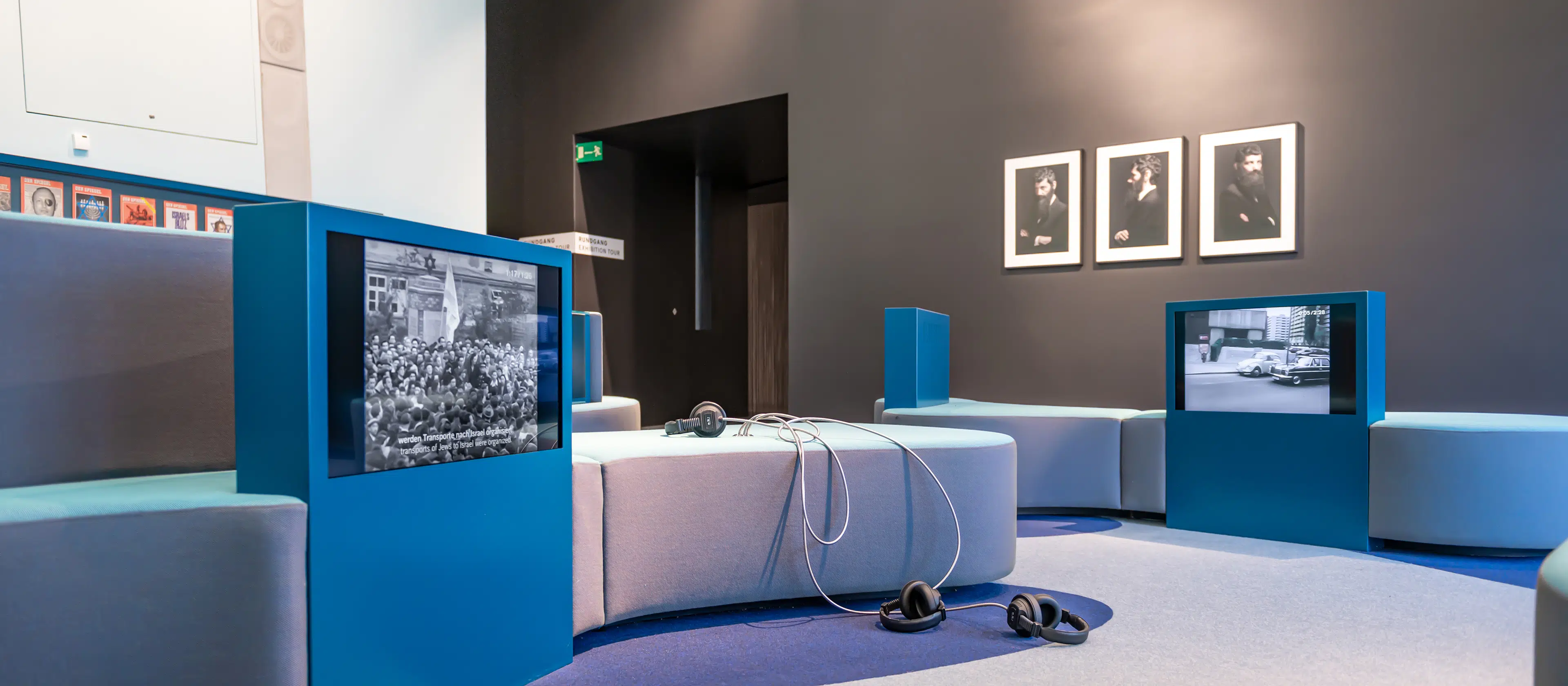 Audio-und Videoinstallationen im Liebeskind-Bau geben den Besuchern auf Ihrem historischen Rundgang Einblicke in die jüdische Kultur und Religion.