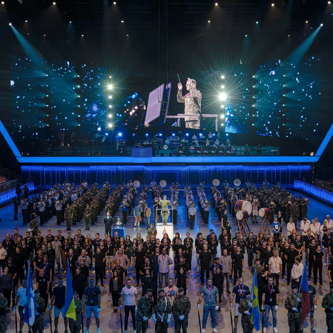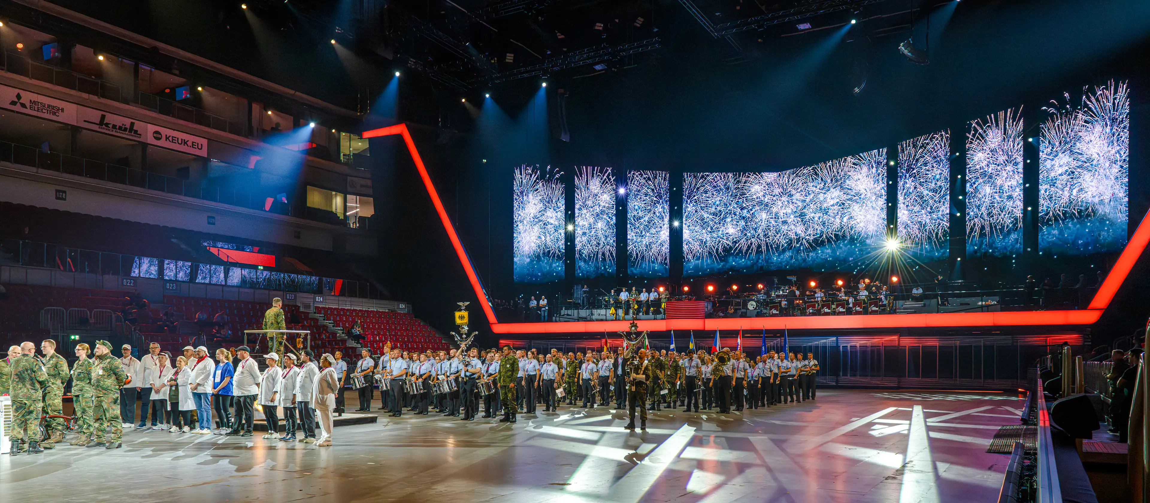 Anlässlich des renommierten Musikfestes der Bundeswehr im PSD BANK DOME Düsseldorf, durften wir einen eindrucksvollen Beitrag zur visuellen Gestaltung leisten.