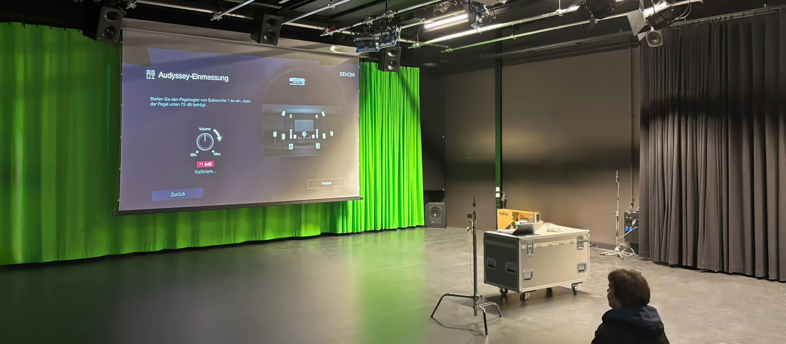 Für die speziell geforderte Kino-Atmosphäre wurde eine große Leinwand von AV Stumpfl installiert. Eine Surround-Anlage mit insgesamt sieben Lautsprechern und vier mobilen Subwoofern von Genelec sorgt für erstklassigen Klang. Zudem wurde Mikrofontechnik von Sennheiser integriert und insgesamt 14 ARRI-Leuchten montiert. Die Steuerung erfolgt über ein ChamSys Lichtpult oder mobil via iPad.